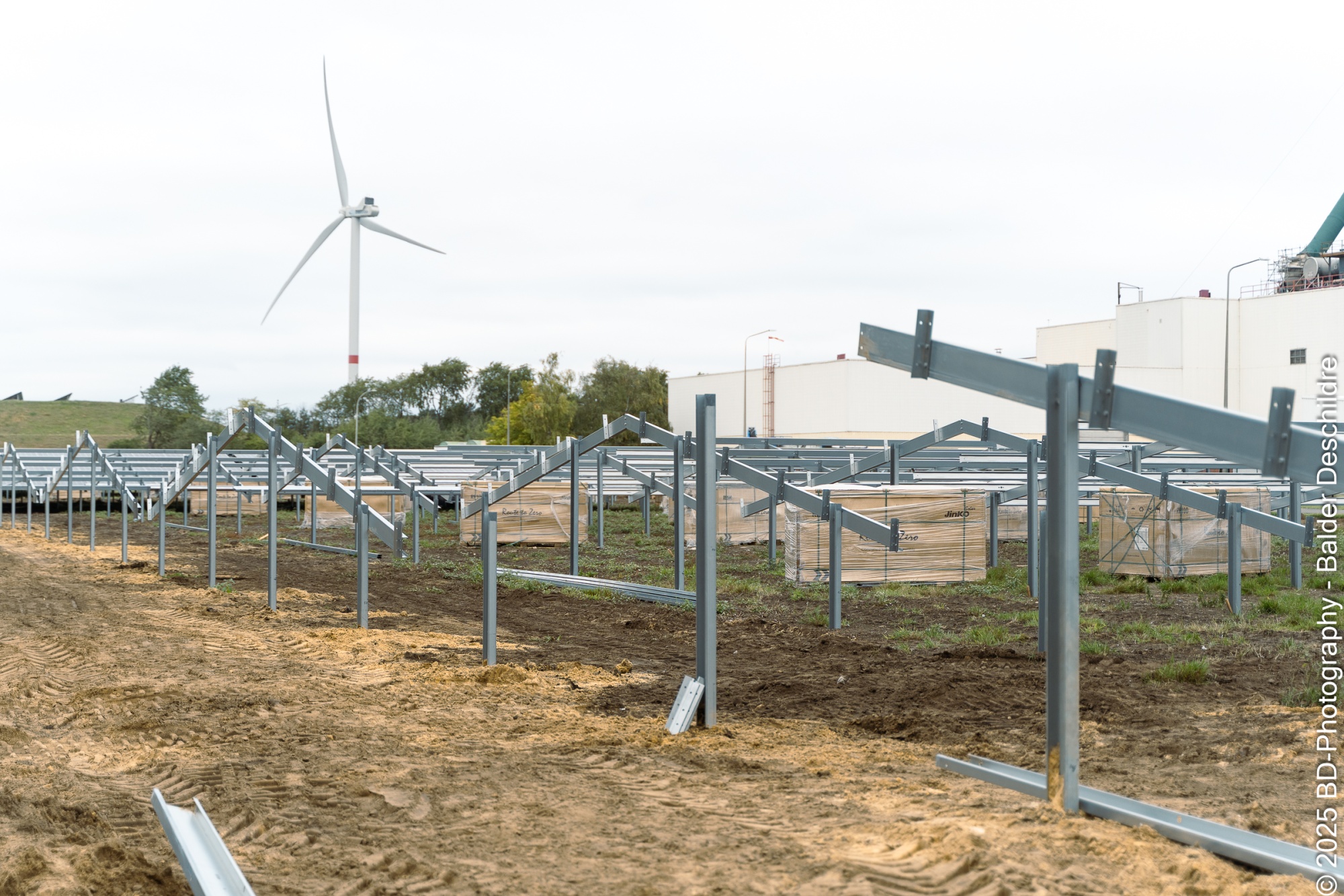 Het dak-gebonden zonnepanelenpark bestaat uit 3436 zonnepanelen en heeft een vermogen van circa 1,409 MWp. Het zonnepanelenpark wordt geplaatst op de bestaande dakconstructie en wordt via een kabel verbonden met de technische cabines binnen het bestaande gebouw met een omvormer en een transformator. Het grondgebonden zonnepanelenpark bestaat uit 8268 zonnepanelen en heeft een vermogen van circa 5,705 MWp. Het zonnepanelenpark wordt geplaatst op een staalconstructie en wordt via een kabel onder de toegangswegen verbonden met een 2 technische cabines met elk een omvormer en een transformator. Deze transformators worden op hun beurt verbonden met de koppelingscabine.